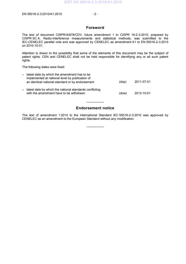 IEC-CENELEC parallel vote and was approved by CENELEC as amendment A1 to EN 55016-2-3:2010