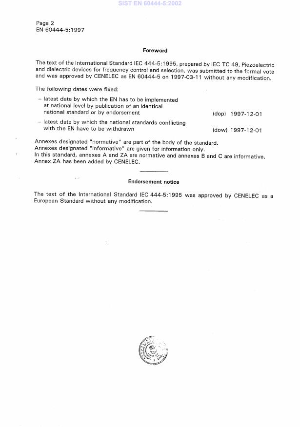 Ta slovenski standard je istoveten z: EN 60444-5:1997