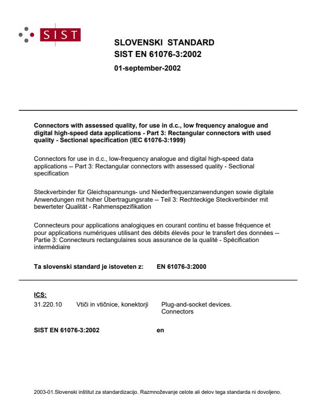 Ta slovenski standard je istoveten z: EN 61076-3:2000