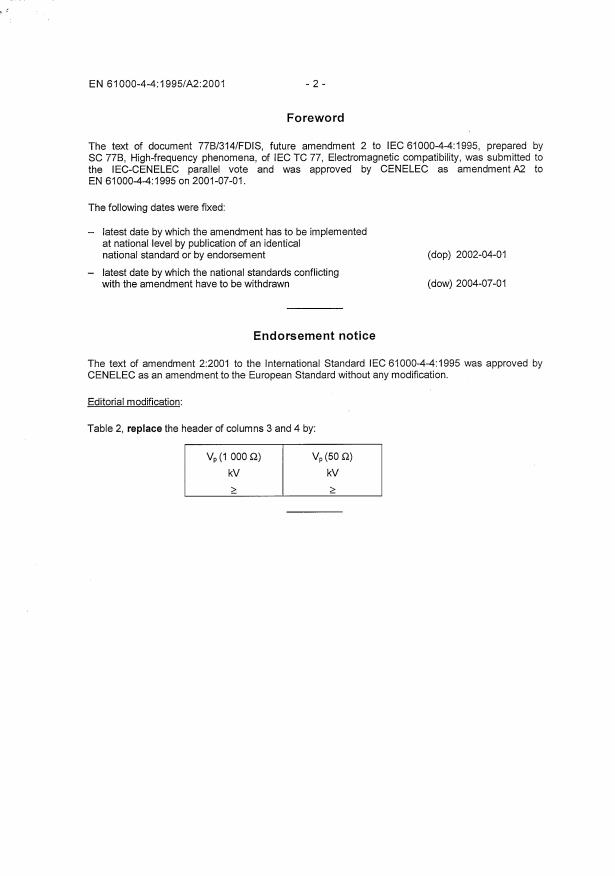 EN following parallel vote * Superseded by EN 61000-4-4:2004