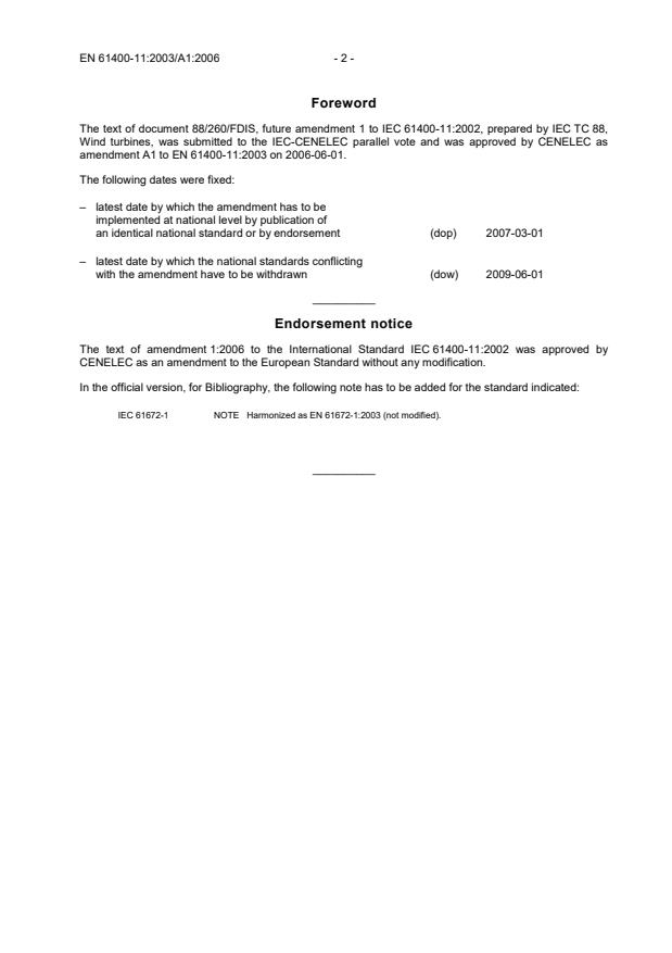 – 2 – 61400-11 Amend. 1 IEC:2006(E)
