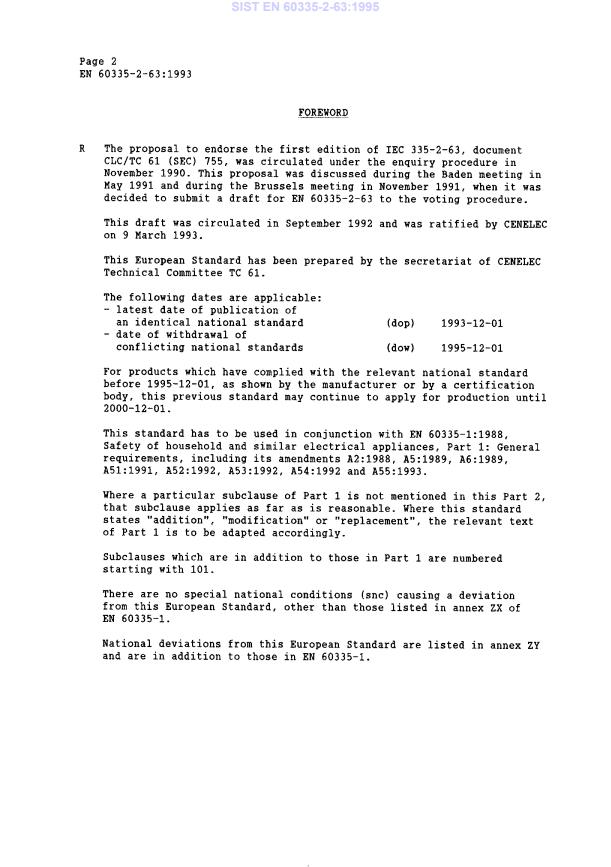 EN 60335-2-63:1993 is associated with the following European legislation: EU Directives/Regulations: 2006/95/EC, 73/23/EEC. When a standard is cited in the Official Journal of the European Union, products manufactured in conformity with it benefit from a presumption of conformity with the essential requirements of the corresponding EU directive or regulation.