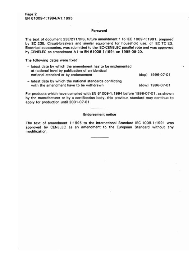 EN following parallel vote * Corrigendum to EN/A1 issued Dec. 1997 * Superseded by EN 61009-1:2004