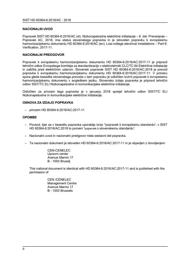 Popravek k evropskemu harmonizacijskemu dokumentu HD 60364-6:2016/AC:2017-11 je pripravil