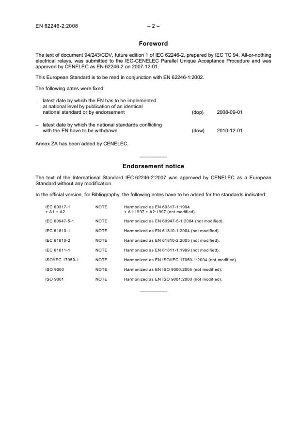 EN 62246-2:2008 has the following relationships with other standards: It is inter standard links to EN 62246-1:2011, EN 62246-1:2002. Understanding these relationships helps ensure you are using the most current and applicable version of the standard.