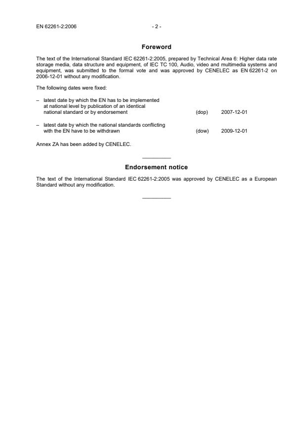 The text of the International Standard IEC 62261-2:2005 was approved by CENELEC as a European