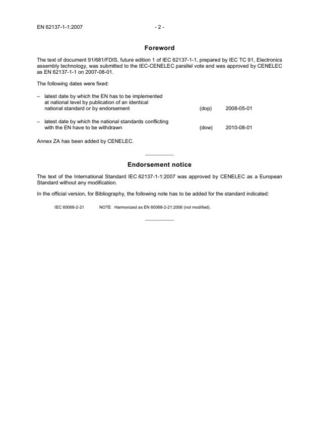 International Standard IEC 62137-1-1 has been prepared by IEC technical committee 91: