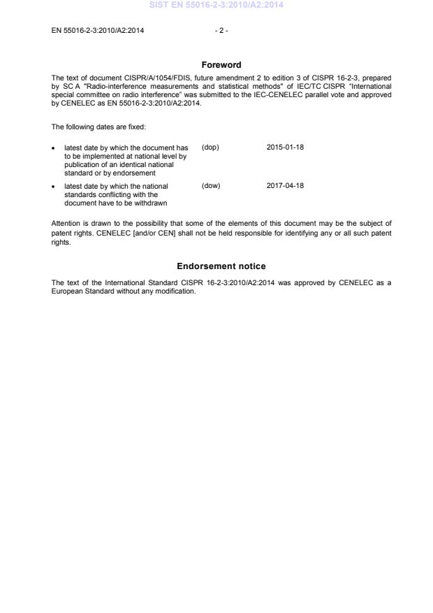 This amendment A2 modifies the European Standard EN 55016-2-3:2010; it was approved by CENELEC on 2014-04-18. CENELEC