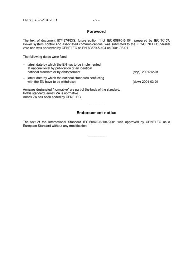 vote and was approved by CENELEC as EN 60870-5-104 on 2001-03-01.