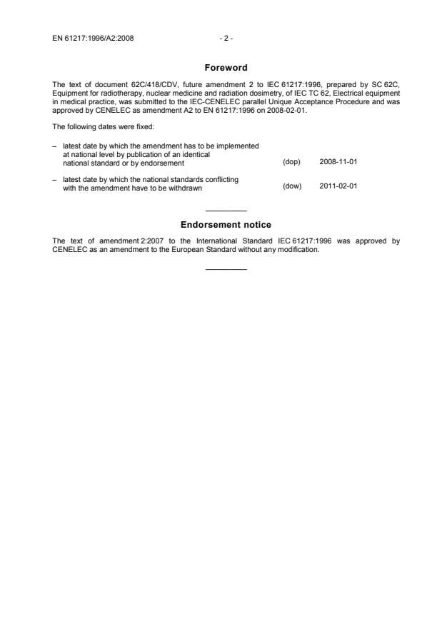 approved by CENELEC as amendment A2 to EN 61217:1996 on 2008-02-01.