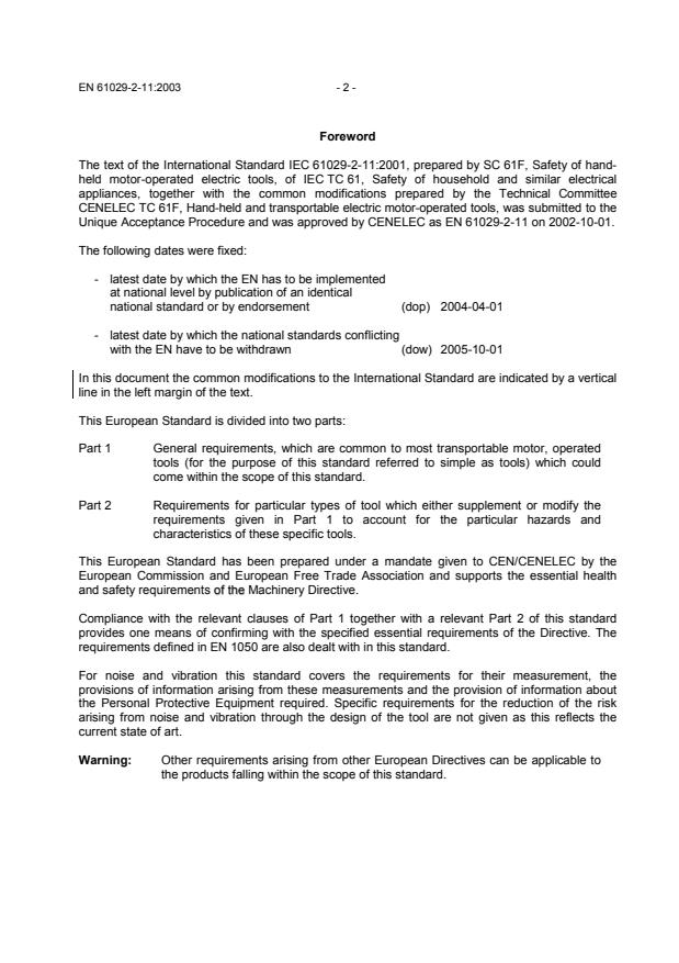 Unique Acceptance Procedure and was approved by CENELEC as EN 61029-2-11 on 2002-10-01.