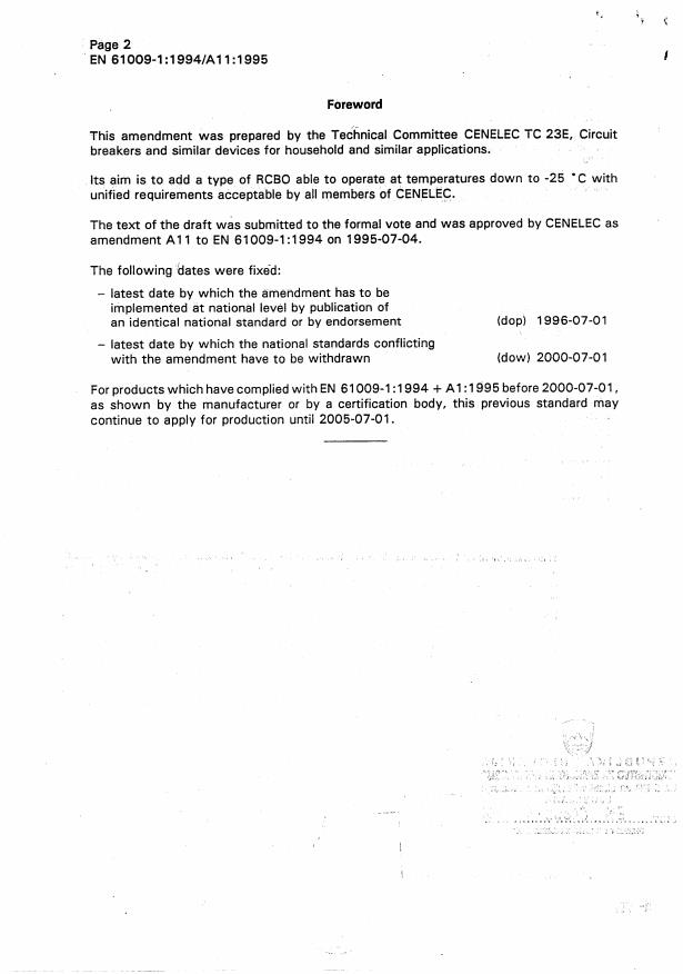 Corrigendum to EN/A11 issued December 1997 (deletion of certification clause) * Superseded by EN 61009-1:2004