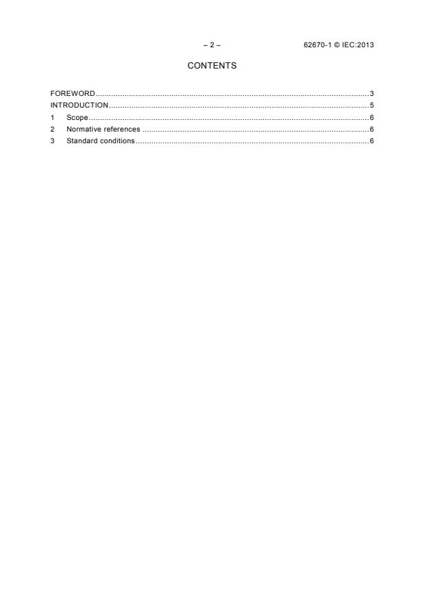 International Standard IEC 62670-1 has been prepared by IEC technical committee 82: Solar