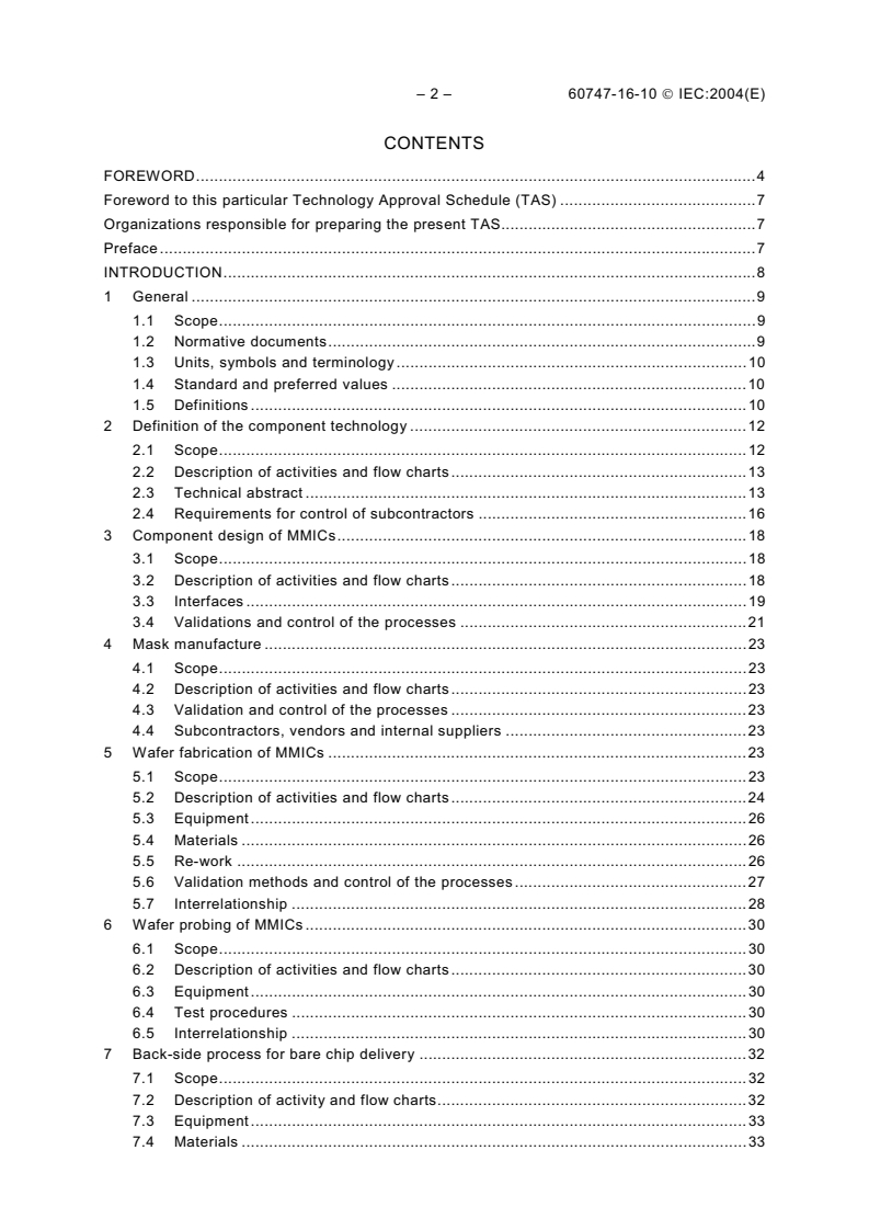 IEC 60747-16-10:2004 is a standard published by the International Electrotechnical Commission (IEC). Its full title is "Semiconductor devices - Part 16-10: Technology Approval Schedule (TAS) for monolithic microwave integrated circuits". This standard covers: IEC 60747-16-10:2004 specifies the terms, definitions, symbols, quality system, test, assessment and verification methods and other requirements relevant to the design, manufacture and supply of monolithic microwave integrated circuits in compliance with the general requirements of the IECQ-CECC System for electronic components of assessed quality.