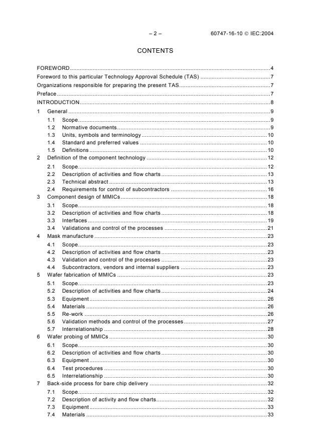 IEC 60747-16-10:2004 - Semiconductor devices - Part 16-10: Technology Approval Schedule (TAS) for monolithic microwave integrated circuits