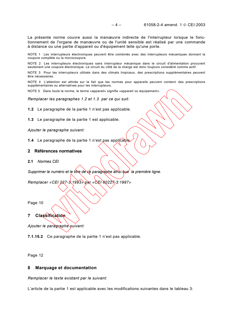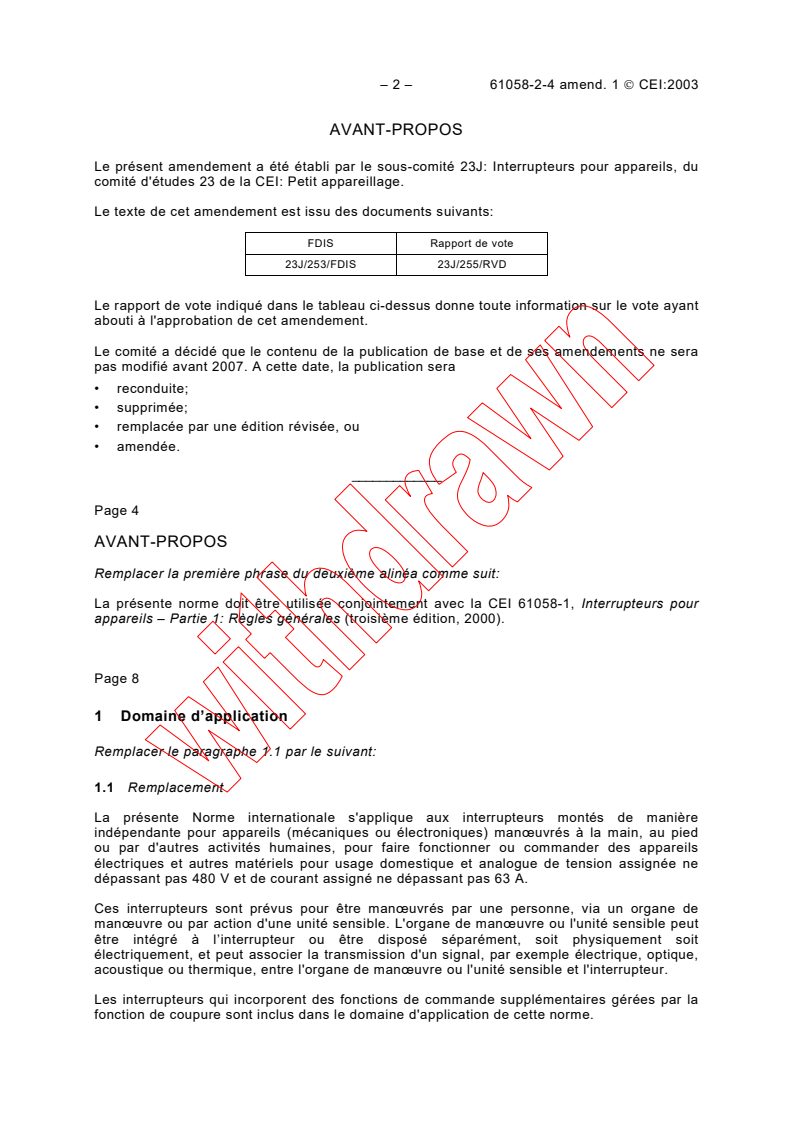 Amendement 1 - Interrupteurs pour appareils - Partie 2-4: Règles particulières pour les interrupteurs à montage indépendant