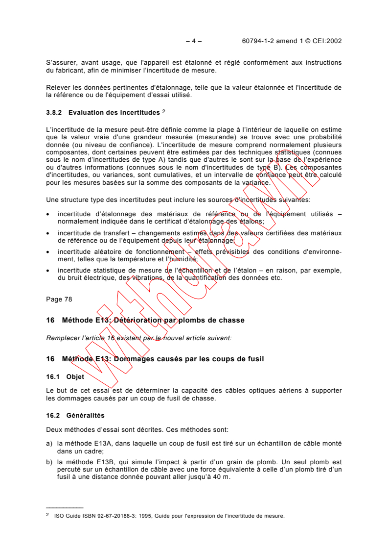 Keywords: IEC 60794-1-2 amendment, optical fibre cables test procedures, fibre optic cable calibration, measurement uncertainty, shotgun damage testing, optical cable durability, IEC fibre optics standards, optical cable quality control, optical fibre attenuation, optical cable certification.