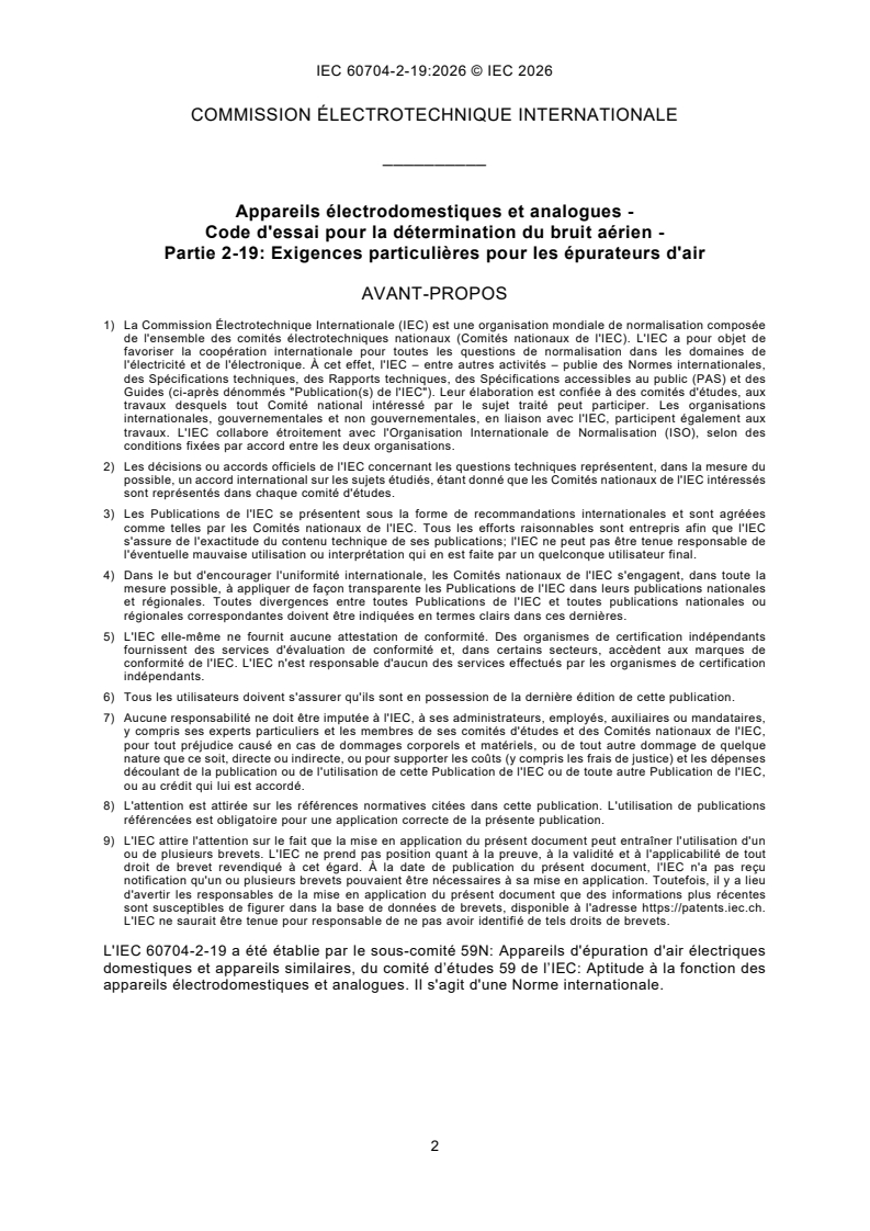 IEC 60704-2-19:2026 - Household and similar electrical appliances - Test code for the determination of airborne acoustical noise - Part 2-19: Particular requirements for air cleaners Released:30. 01. 2026 Isbn:9782832710029