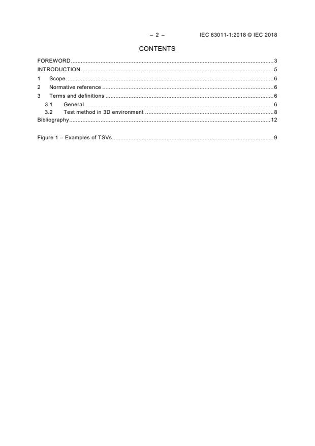IEC 63011-1:2018 is an international standard developed by the International Electrotechnical Commission (IEC) that focuses on terminology related to three-dimensional (3D) integrated circuits (ICs). This Part 1 document provides clear definitions for key concepts associated with multichip integrated circuits, specifically those involving vertically stacked dies interconnected by through-silicon vias (TSVs) or micro bumps. It also covers terms related to the fabrication and testing of these advanced 3D multichip ICs, providing a foundational vocabulary essential for engineers, manufacturers, and researchers in semiconductor devices and 3D integration technology.