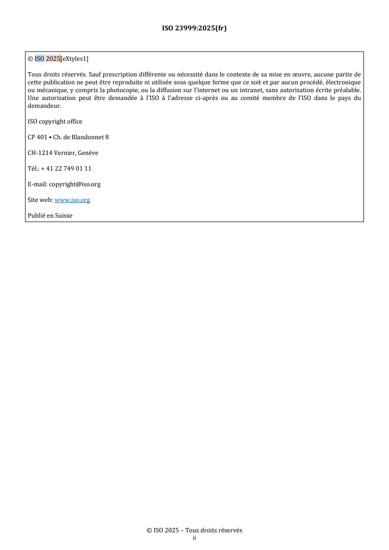 Cette quatrième édition annule et remplace la troisième édition (ISO 23999:2021[eXtyles2]), qui a fait l’objet d’une