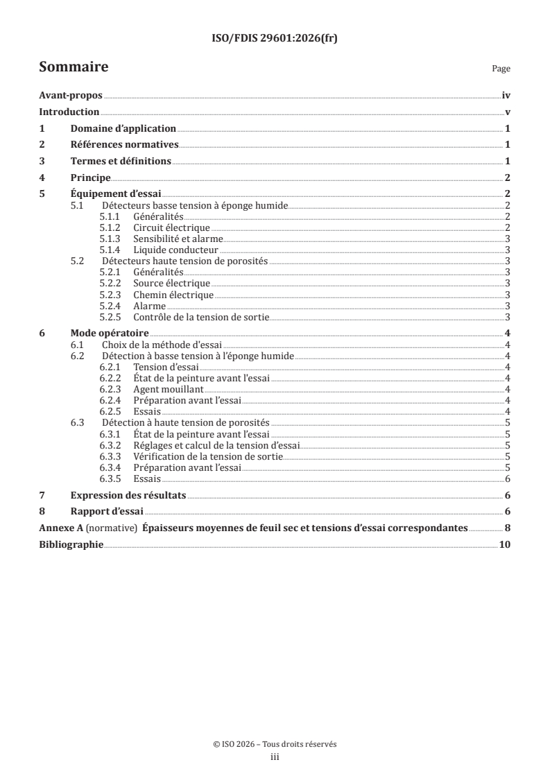 REDLINE ISO/FDIS 29601 - Paints and varnishes — Corrosion protection by protective paint systems — Assessment of porosity in a dry film Released:15. 01. 2026
