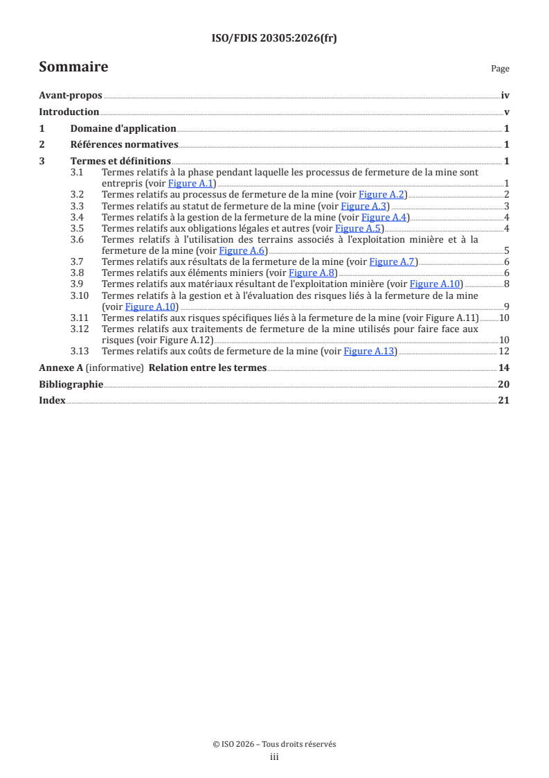 ISO/FDIS 20305 - Fermeture et remise en état des mines — Vocabulaire