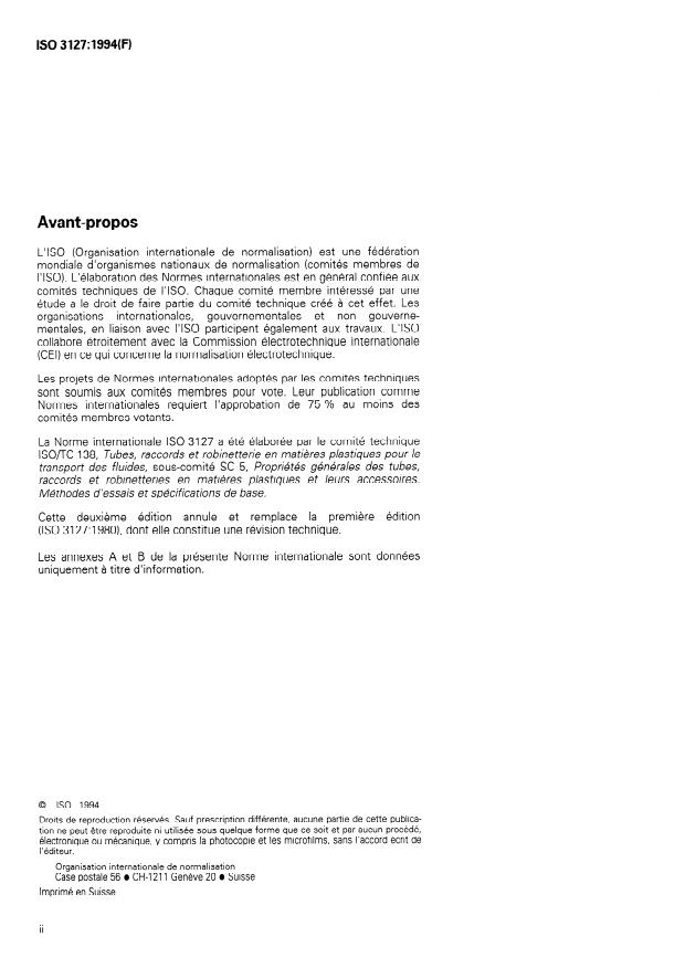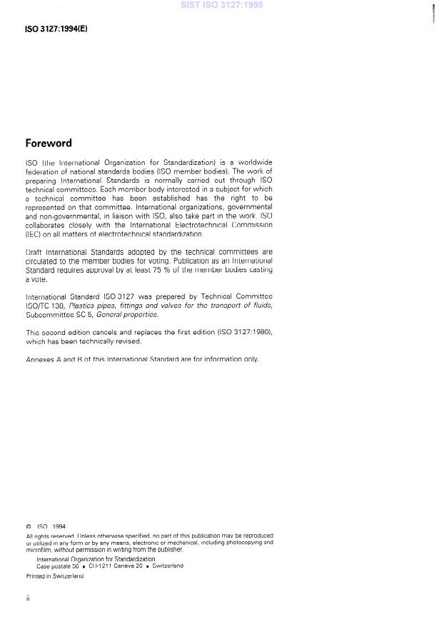 - ISO/TC 138 (Plastics pipes) is the relevant technical committee; ISO 3127:1994 replaces the 1980 edition.