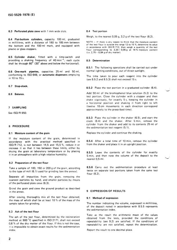 ISO 5529:1978 - Wheat -- Determination of sedimentation index -- Zeleny test
