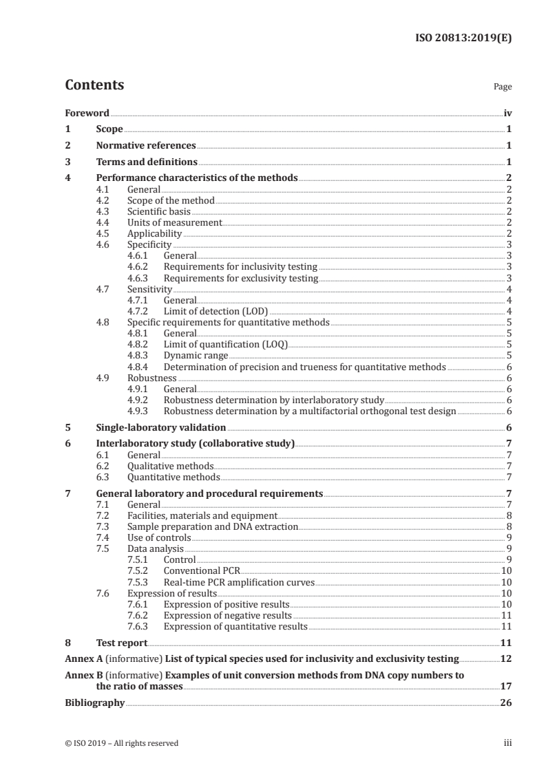 - Annexes: Informative lists of typical species for testing (Annex A) and examples for converting DNA copy numbers to mass ratios (Annex B).