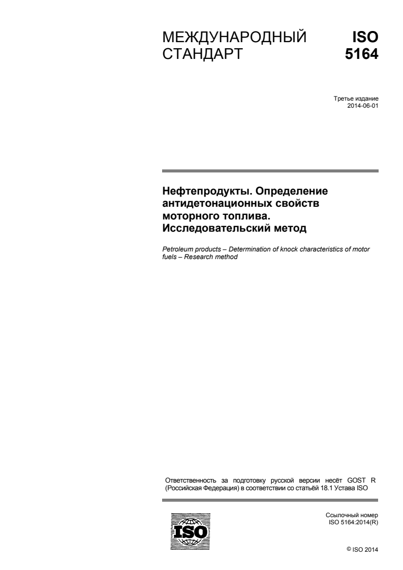 ISO 5164:2014 - Petroleum products -- Determination of knock characteristics of motor fuels -- Research method
