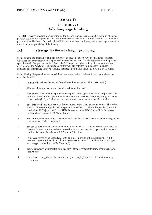 Specifies the Ada language standard that this amendment’s binding depends on.ISO/IEC 10728:1993 (original) - IRDS Services Interface