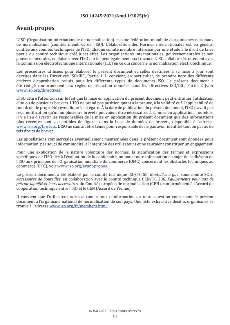 ISO 14245:2021/Amd 1:2025 - Bouteilles à gaz — Spécifications et essais pour valves de bouteilles de GPL — Fermeture automatique — Amendement 1 Released:28. 01. 2026
