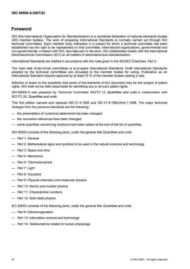 Ta mednarodni standard daje imena, simbole in definicije za veličine in enote termodinamike. Kadar je to primerno tudi pretvorbene faktorje.