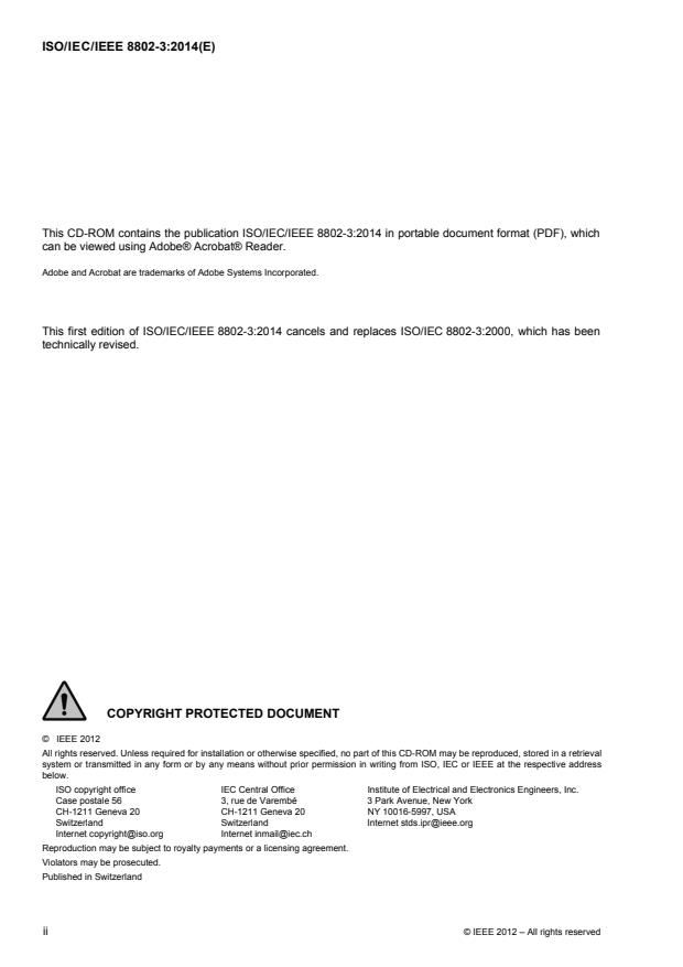 This CD-ROM contains the publication ISO/IEC/IEEE 8802-3:2014 in portable document format (PDF), which