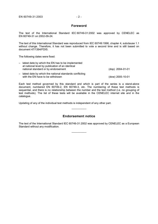 The text of the International Standard IEC 60749-31:2002 was approved by CENELEC as a European