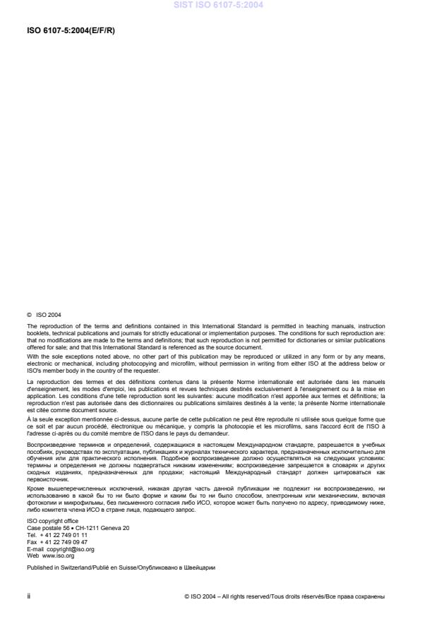 SIST ISO 6107-5:2004 is available in PDF format for immediate download after purchase. The document can be added to your cart and obtained through the secure checkout process. Digital delivery ensures instant access to the complete standard document.
